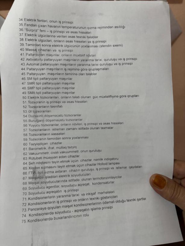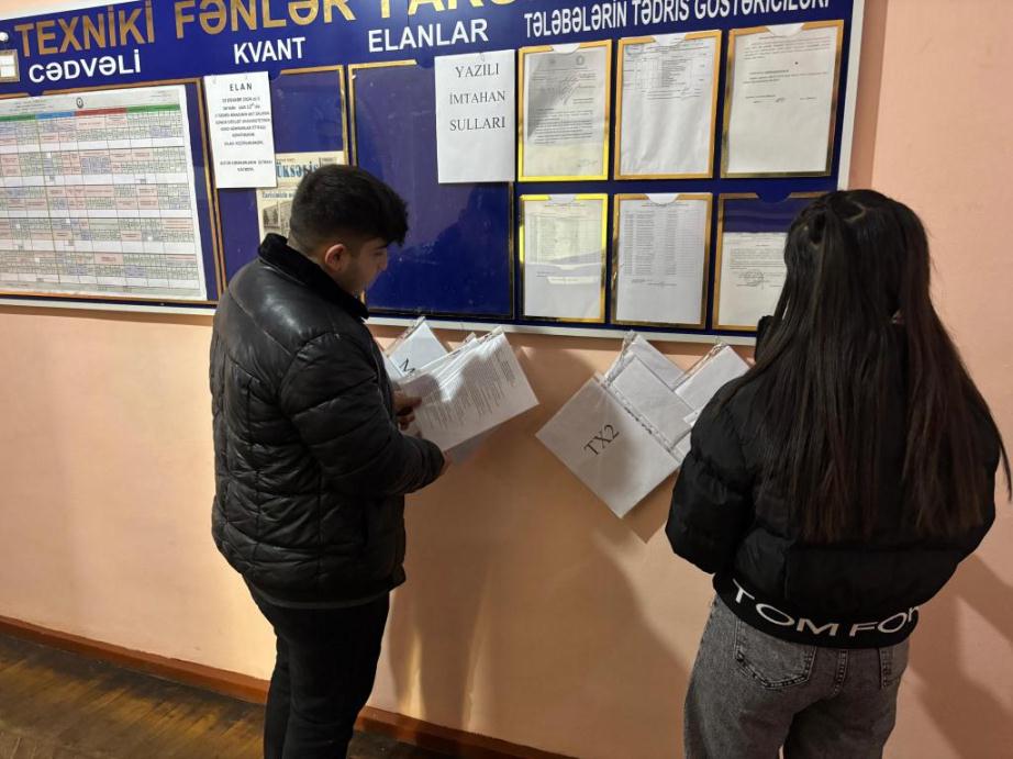 Fizika və texniki fənlər fakültəsində də altı imtahanı olan ixtisaslarda dördü yazılı və ikisi test olaraq müəyyənləşdirilmişdir. Test və yazılı imtahanların sualları çap olunaraq fakültənin foyesində məlumatlar guşəsində asılmışdır.