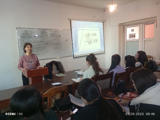 B/müəl. Saidə Tağıyeva açıq dərsin gedişində əyani vasitələrdən, müasir texnologiyalardan geniş istifadə edərək mövzunu tələbələrə çatdırdı.