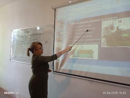 Açıq dərsin mövzusu “Metalkəsən dəzgahların təsnifatı. Torna dəzgahlarının növləri və tətbiq sahələri” olmuşdur.