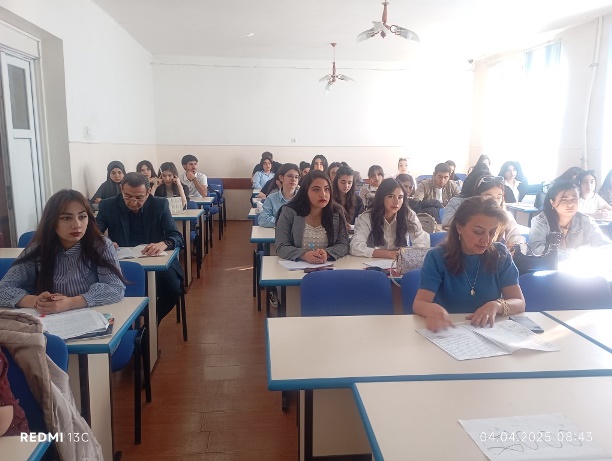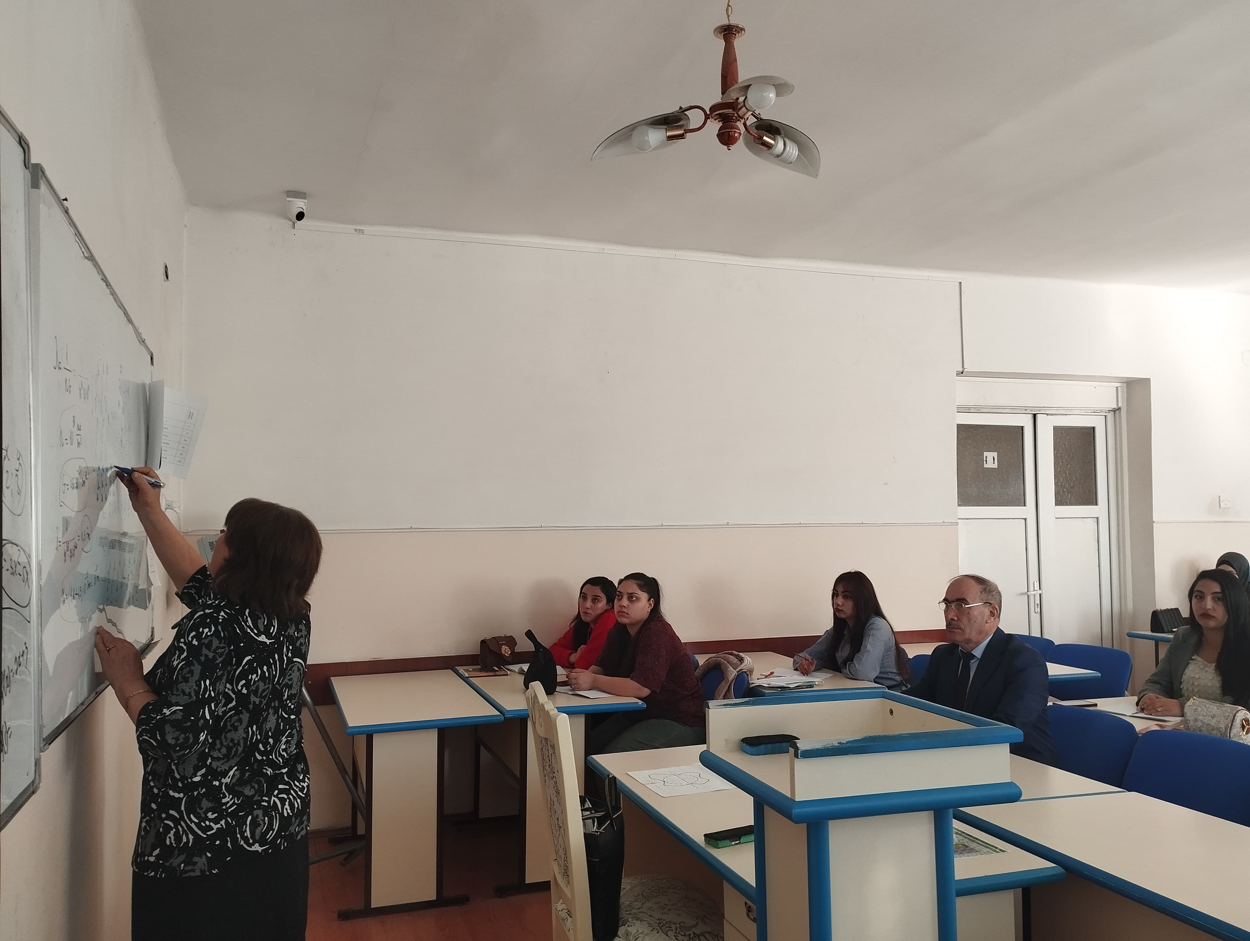 dos.Səyyarə İsgəndərova kompyuter texnikasından istifadə etməklə tələbələrlə konstruktiv və kommunikativ əlaqələr quraraq mövzunu hərtərəfli izah etdi.