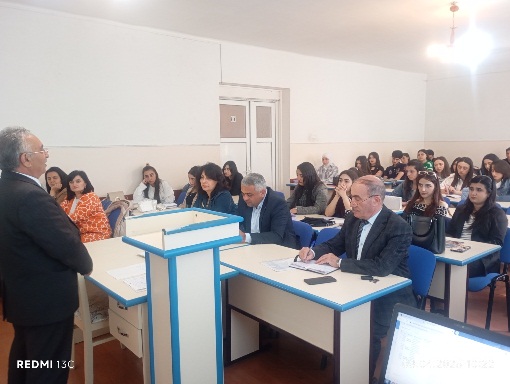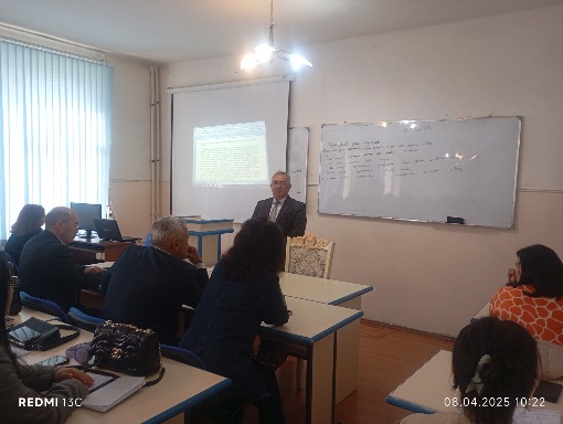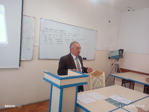 08 aprel 2025– ci il tarixdə Gəncə Dövlət Universitetinin Fizika və texniki fənlər fakültəsində III kurs “Fizika müəllimliyi” ixtisasında Fizika kafedrasının baş müəllimi Musayev Seyfəddin Xəlil oğlunun “Məktəb fizika eksperimenti” fənnindən “Məktəbdə fizika kabinetinin təşkili prinsipləri və ona verilən didaktik tələblər”mövzusunda açıq mühazirə dərsi keçirildi.