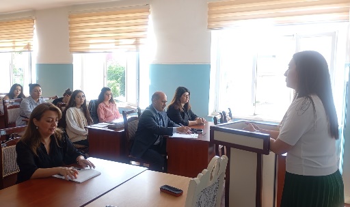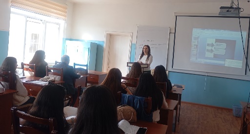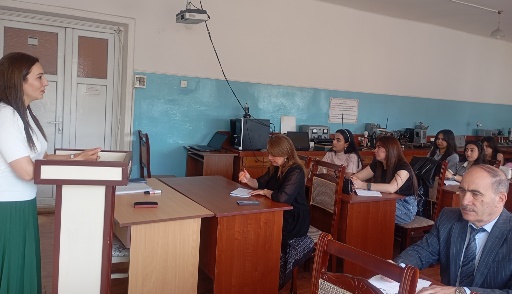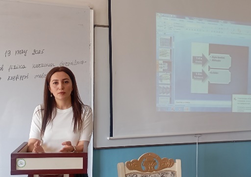 b/m. Nuranə Verdiyeva kompyuter texnikasından istifadə etməklə tələbələrlə konstruktiv və kommunikativ əlaqələr quraraq mövzunu hərtərəfli izah etdi.