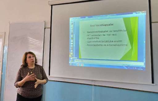 Daha sonra baş müəllim, texnika üzrə fəlsəfə doktoru Verdiyeva Təranə Zahid qızı “Zərərli istehsalat amilləri və onların aradan qaldırılmasında yeni texnologiyalar” mövzusunda məruzə ilə çıxış etmişdir. Məruzədə istehsalat mühitində insan sağlamlığına mənfi təsir göstərən fiziki, kimyəvi və bioloji amillər haqqında geniş məlumat verilmişdir. Bildirilmişdir ki, istehsalat sahələrində səs-küy, vibrasiya, yüksək temperatur, zərərli qazlar, toz və kimyəvi maddələr kimi amillər əmək şəraitinə mənfi təsir göstərir və işçilərin sağlamlığı üçün ciddi risk yarada bilər.