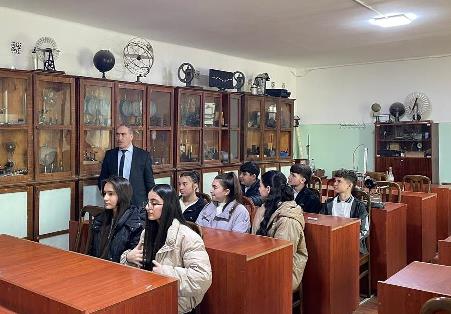 Fizika kafedrasının müdiri dosent Yəhya Namazov şagirdlərə kafedranın müasir avadanlıqlarla təchiz olunmuş laboratoriyalarını ətraflı şəkildə tanıdıb. Laboratoriyalarda təcrübələr nümayiş etdirib, elmi-tədqiqat işləri və tədris prosesi barədə məlumat verib. Dosent Y. Namazov çıxışında şagirdlərin fizika fənninə dərin maraq göstərməsinin, eləcə də analitik və tənqidi düşüncə bacarıqlarını inkişaf etdirməsinin vacibliyini vurğulayıb. O, gənc nəslin elmə olan marağının dəstəklənməsi istiqamətində məsləhətlər verib.