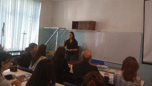 f.f.d. b/m. Aysel Həmzəyeva dərsə başlamazdan əvvəl açıq dərsdə iştirak edən professor – müəllim heyəti üzvlərini salamladı. Daha sonra kompyuter texnikasından istifadə etməklə mövzunun nəzəri hissəsinin izahına başladı. O, mövzunun izahı zamanı tələbələri mövzunun izahına cəlb edirdi və bu zaman onların fərdi xüsusiyyətlərini nəzərə alırdı.