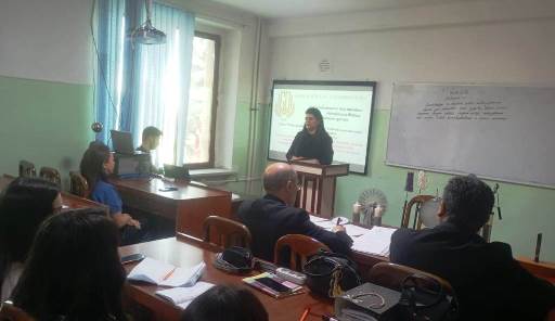 b/m. İlhamə Mövsümova dərsə başlamazdan əvvəl açıq dərsdə iştirak edən professor – müəllim heyəti üzvlərini salamladı. Daha sonra kompyuter texnikasından istifadə etməklə mövzunun nəzəri hissəsinin izahına başladı. O, mövzunun izahı zamanı tələbələri mövzunun izahına cəlb edirdi və bu zaman onların fərdi xüsusiyyətlərini nəzərə alırdı.