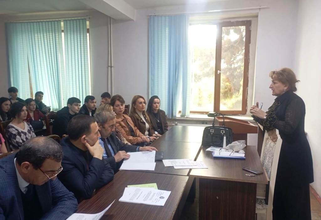 dos. Gülçimən Əhədova açıq dərsin gedişində əyani vasitələrdən, müasir texnologiyalardan geniş istifadə edərək mövzunu tələbələrə çatdırdı.